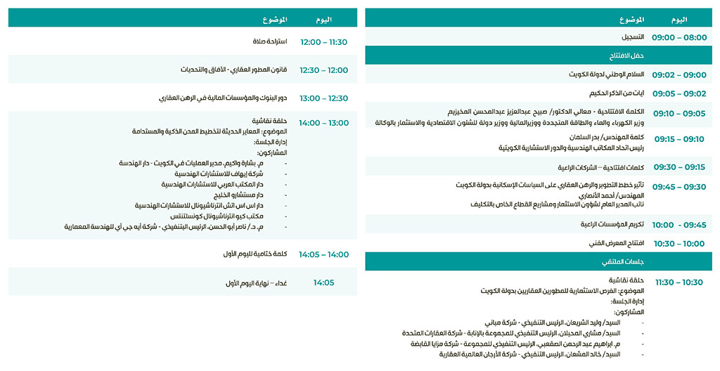 ملتقى الكويت الثاني لمشروعات الدولة التنموية حدث إقليمي رائد يجمع صانعي القرار، المستثمرين، الممولين، والمخططين العمرانيين، والجهات التشريعية لبحث أفضل السبل لتنفيذ مبادرات الدولة الإسكانية الجديدة والتي تعتمد سياسات المطور والرهن العقاري في تطوير المدن الذكية المتكاملة والمستدامة.